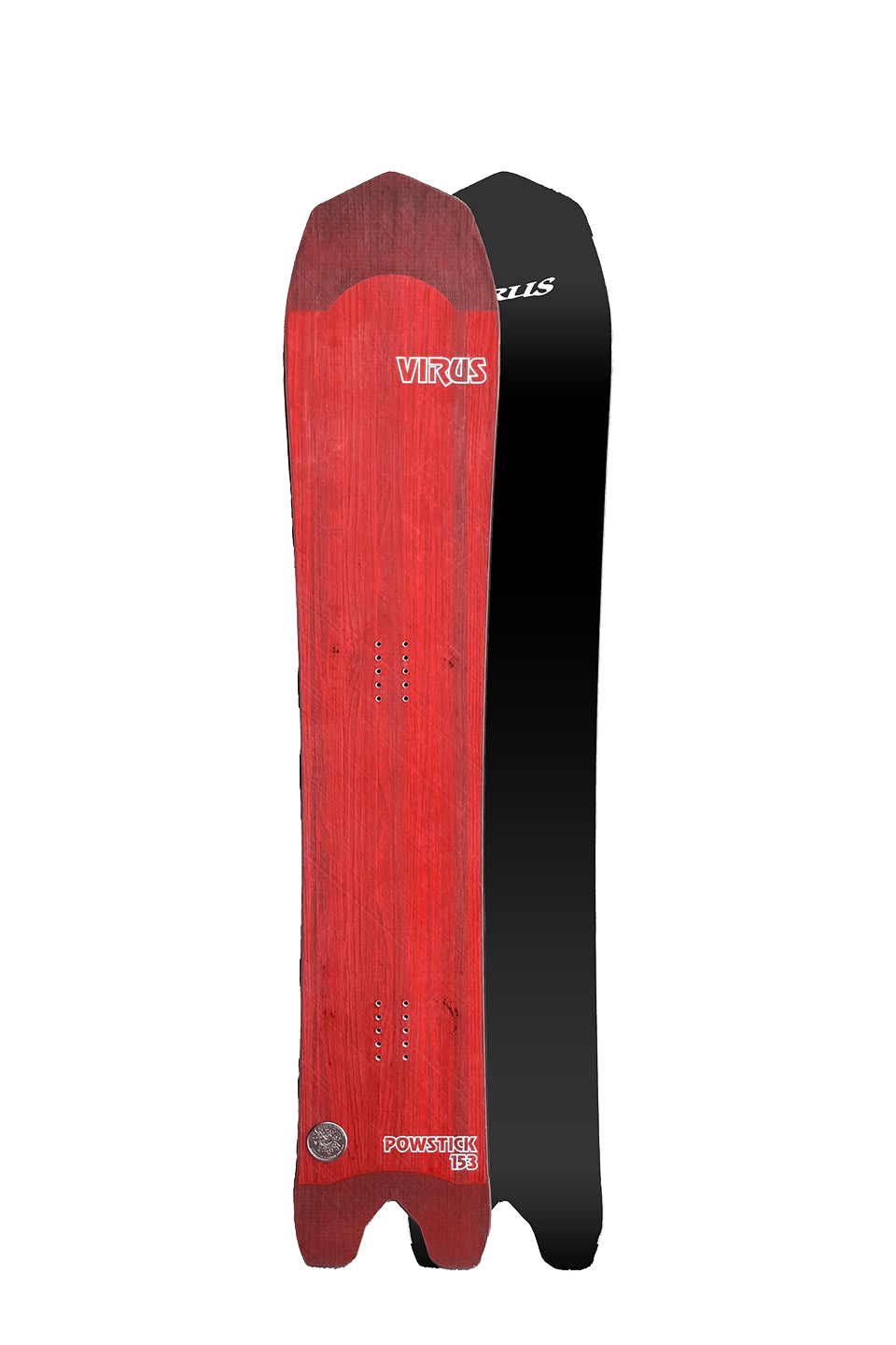 The VIRUS Powstick is a very nice and easy softboot board for deep snow and tree riding but with excellent edge grip on hard slopes too.