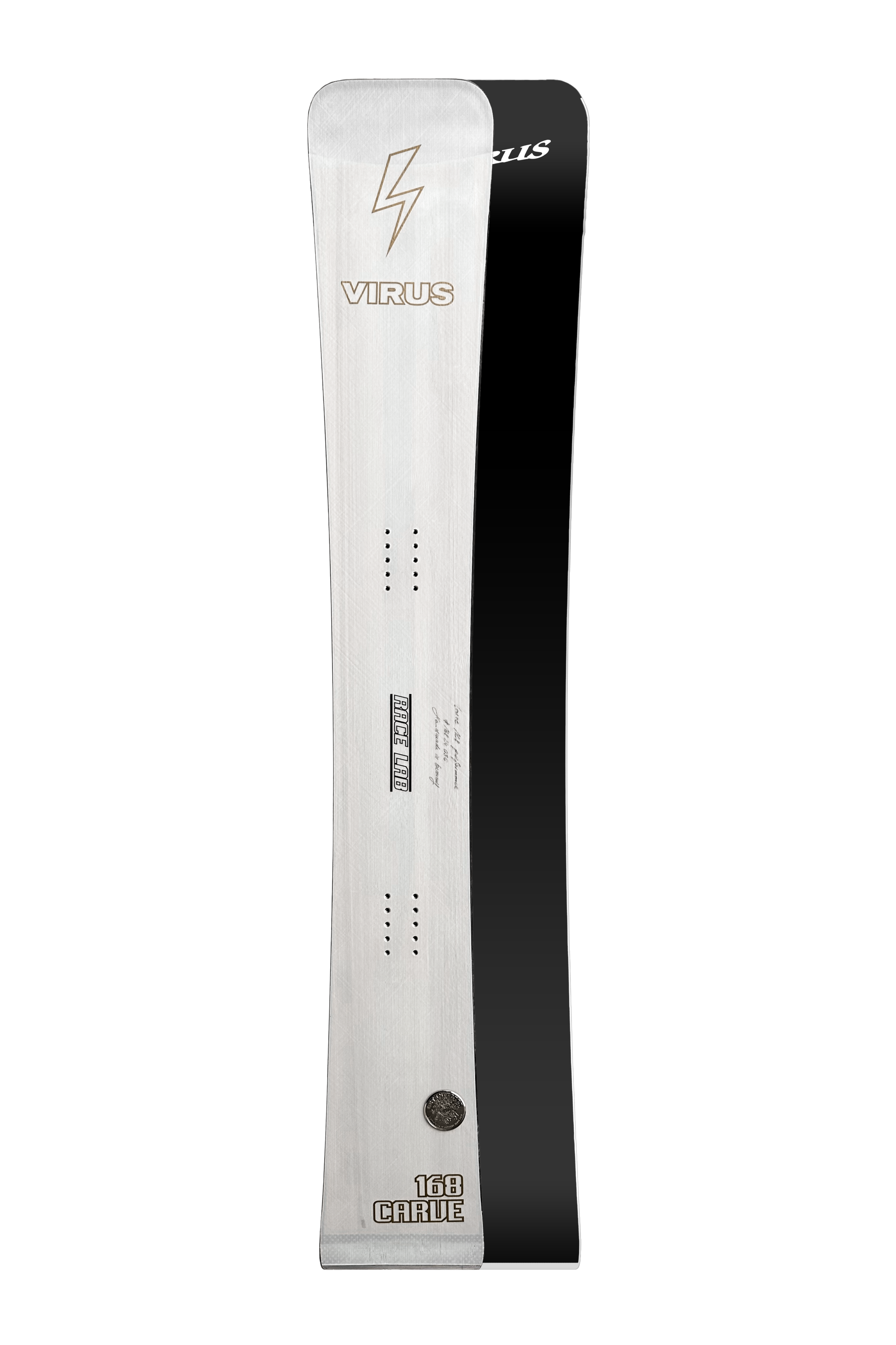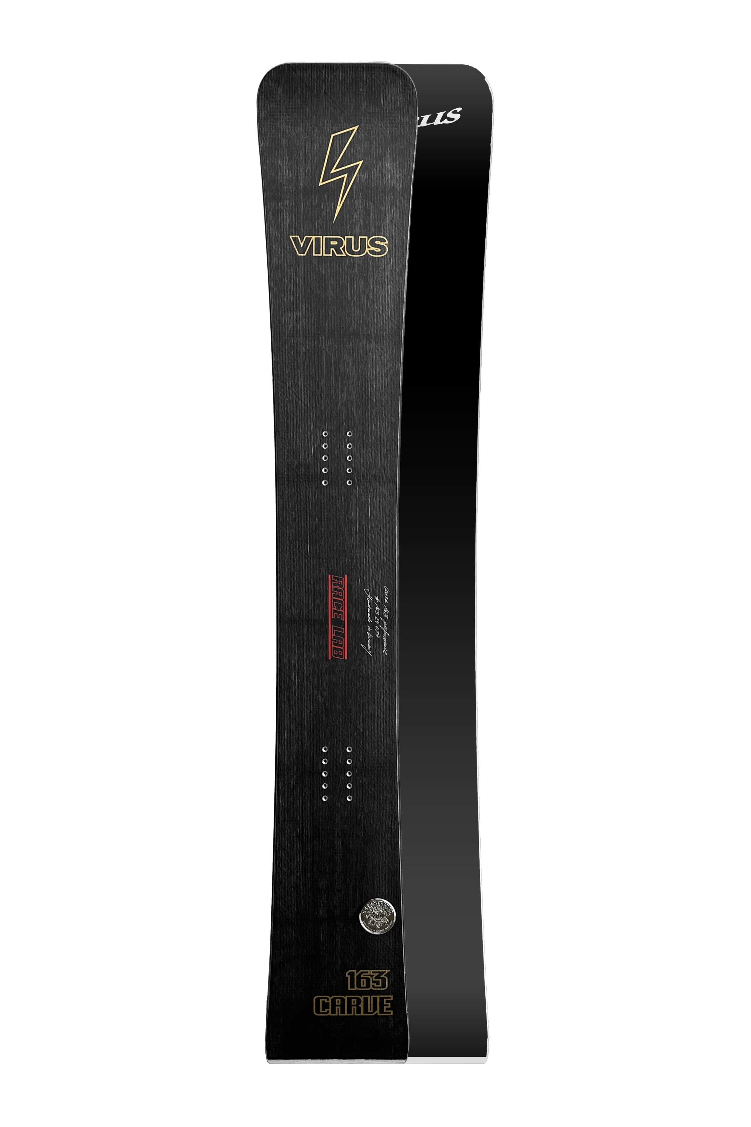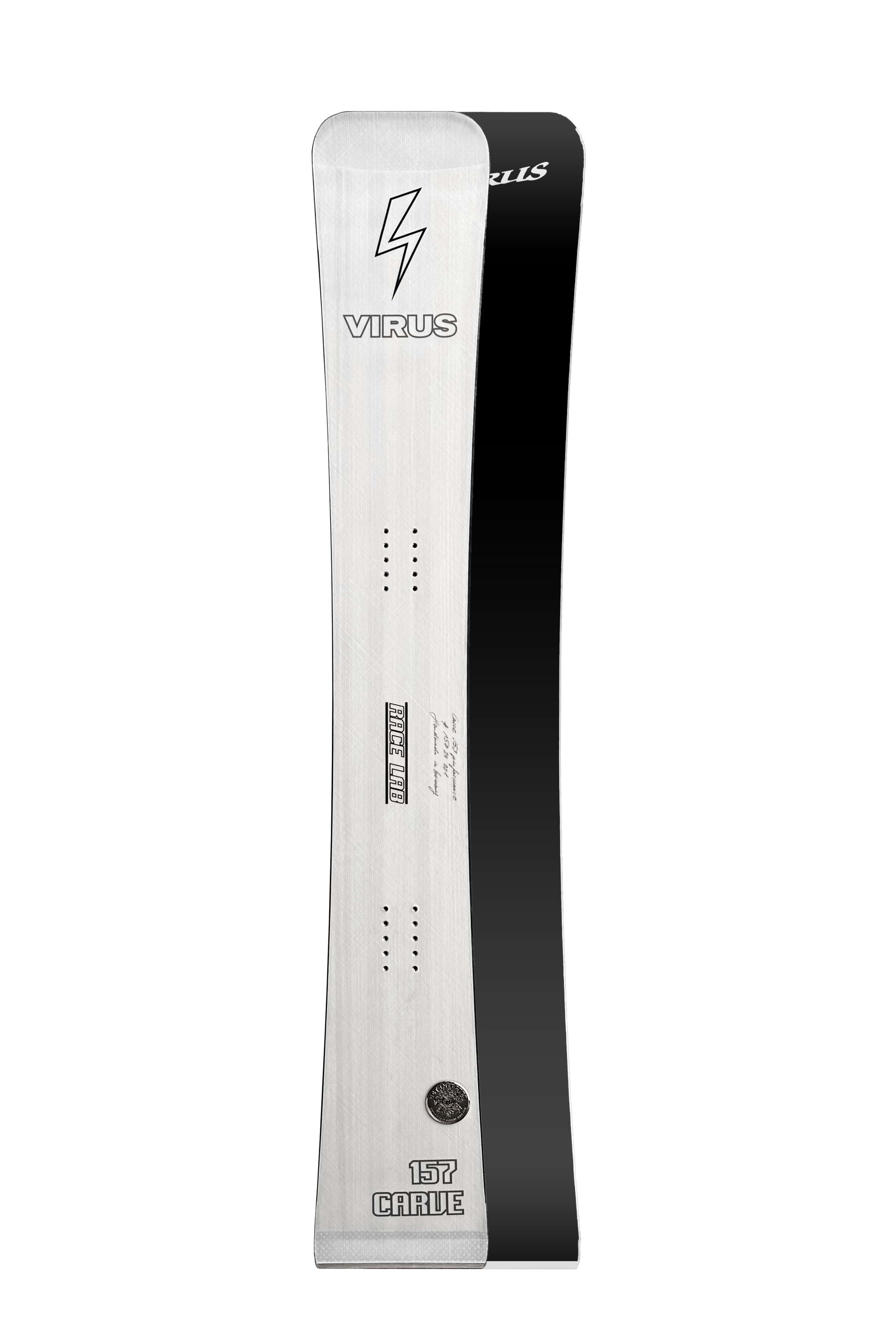 VIRUS new alpine Carve is the result of intense testing and development together with racers and pros from all over the world and Olympic gold medal winner 2022 Benjamin Karlś first choice for freecarving. We strogly recommend the board with our Isolator binding plate system for perfect performance!